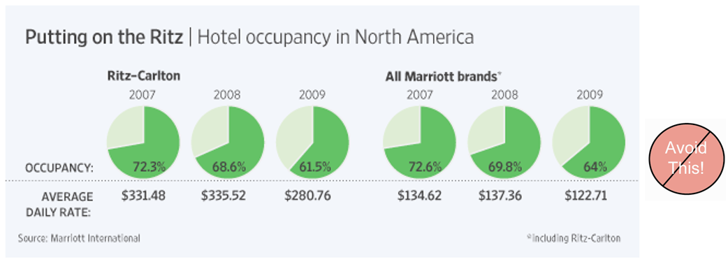 Avoid pie chart if possible because our eyes are not good in reading areas