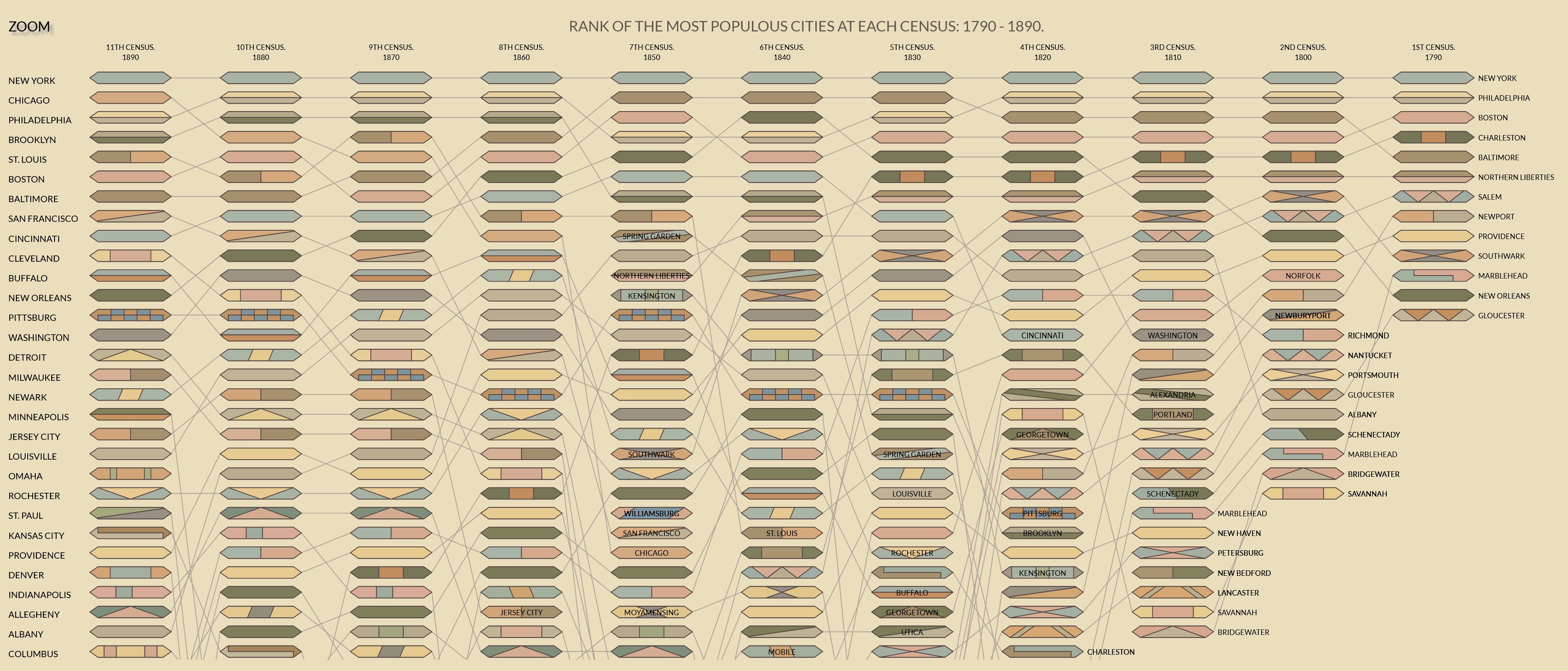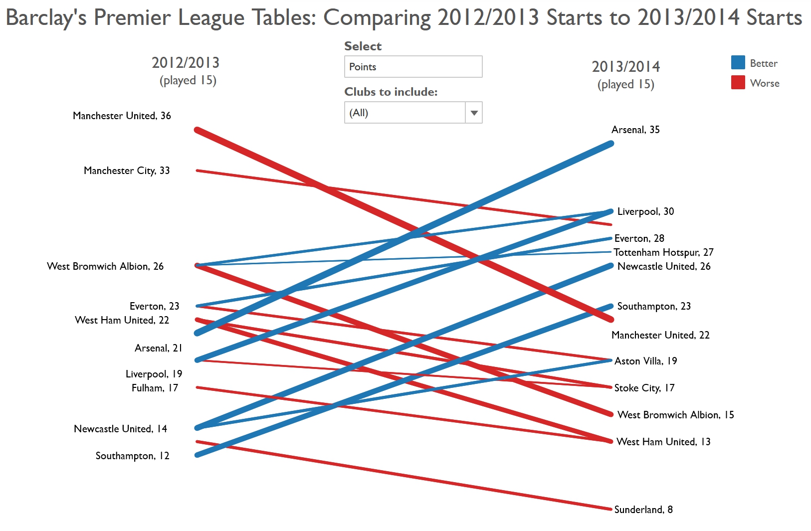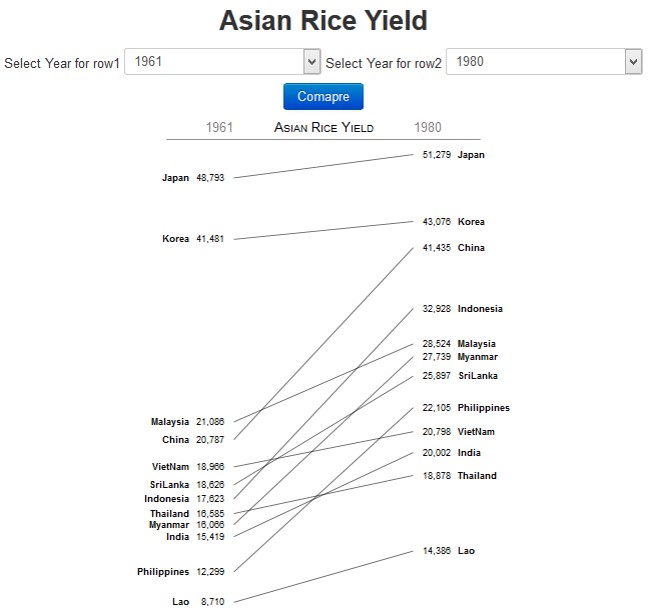 Slopegraphs compare changes usually over time for a list of nouns located on an ordinal or interval scale.