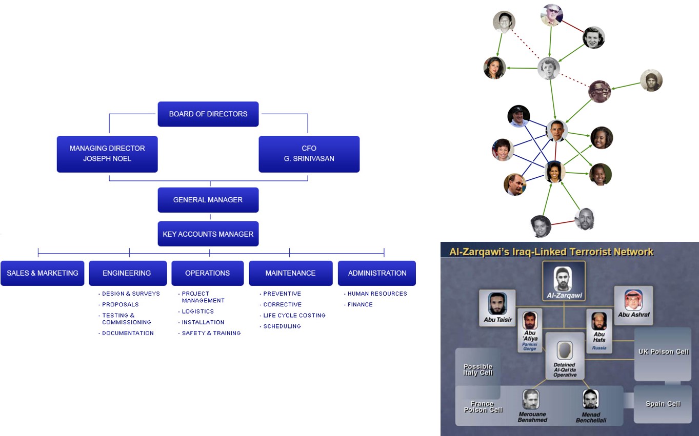 - Organisation (i.e. NGO, politics, customer-company, staff-to-staff, criminal, terrorist, disease, etc)
