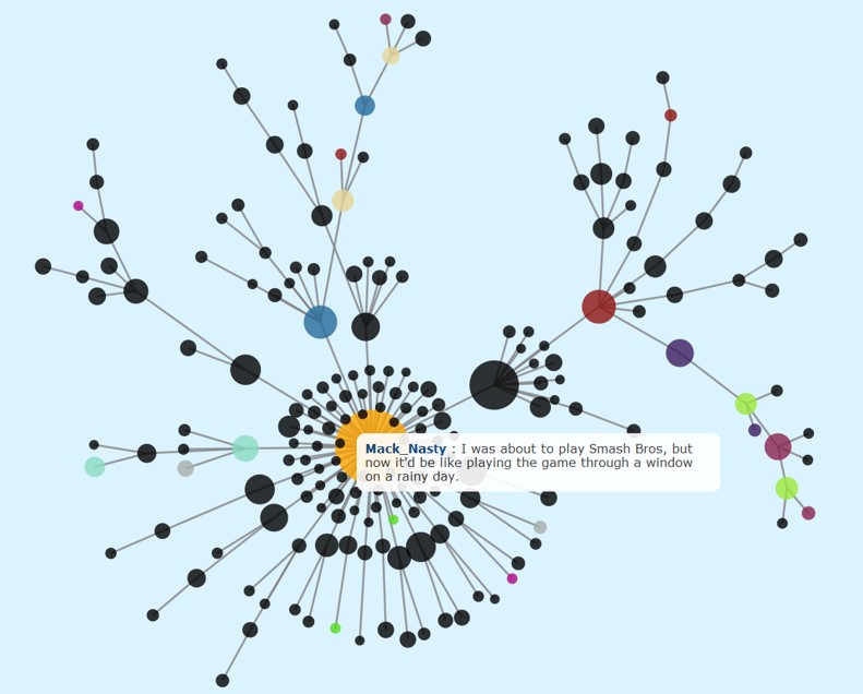 Graph visualisation is used to show how the news are all connected by degrees of separation.