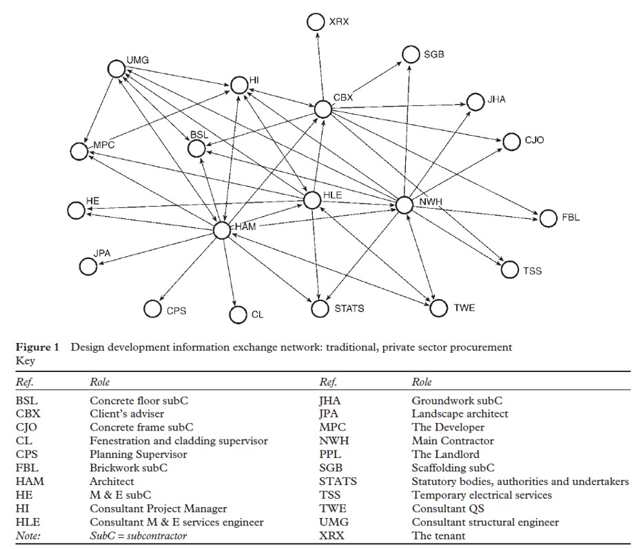 Source: Pryke, S.D.”Analysing construction project coalitions: exploring the application of social network analysis”, Construction Management and Economics, (2004), 22. pp. 787-797.