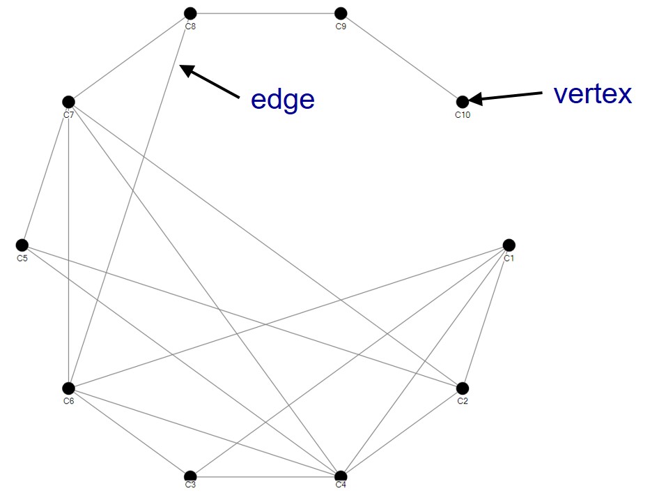 - A measure on how connected a vertex’s neighbours are to one another. More specifically, it is the number of edges connecting a vertex’s neighbours divided by the total number of possible edges between the vertex’s neighbour.