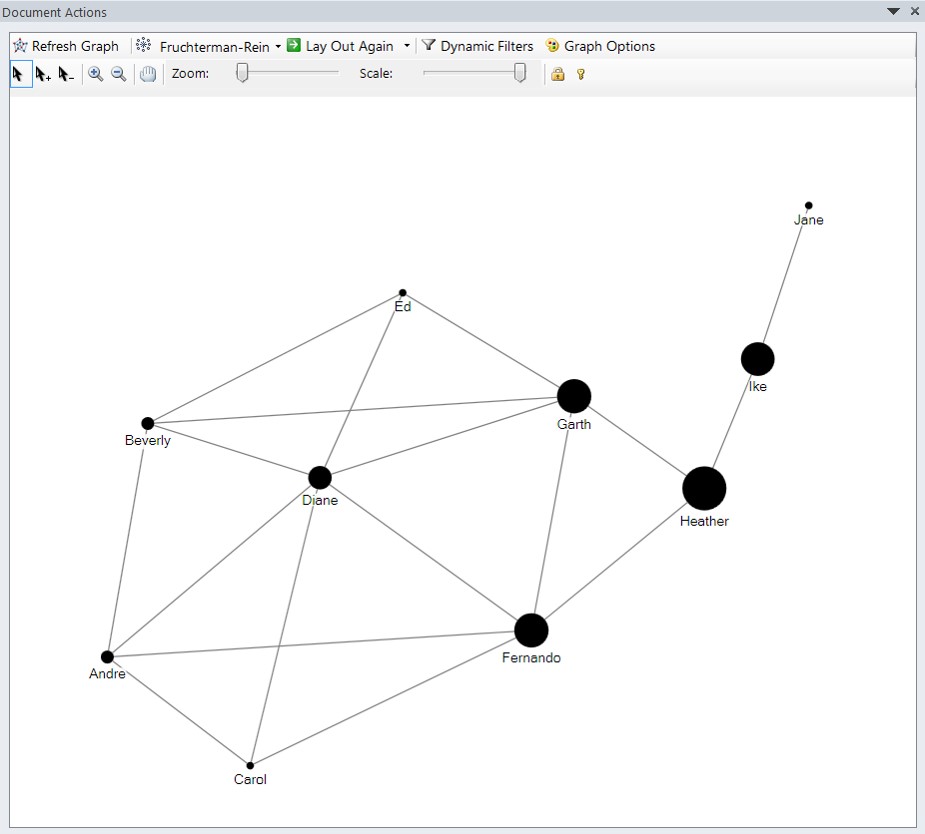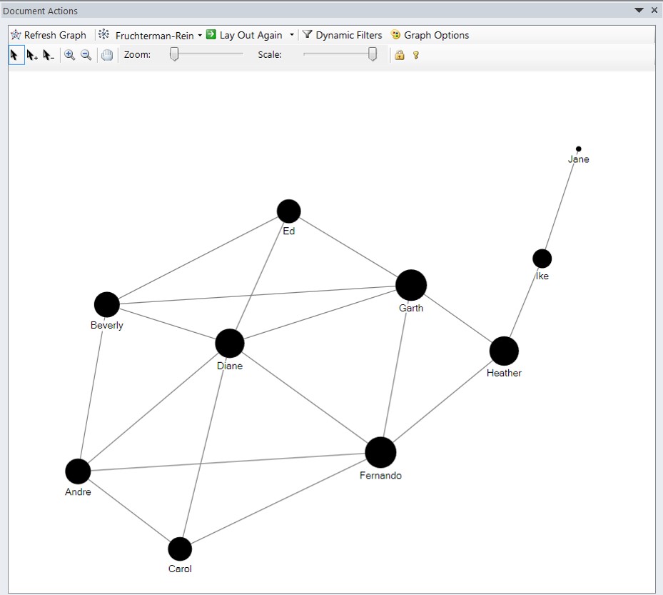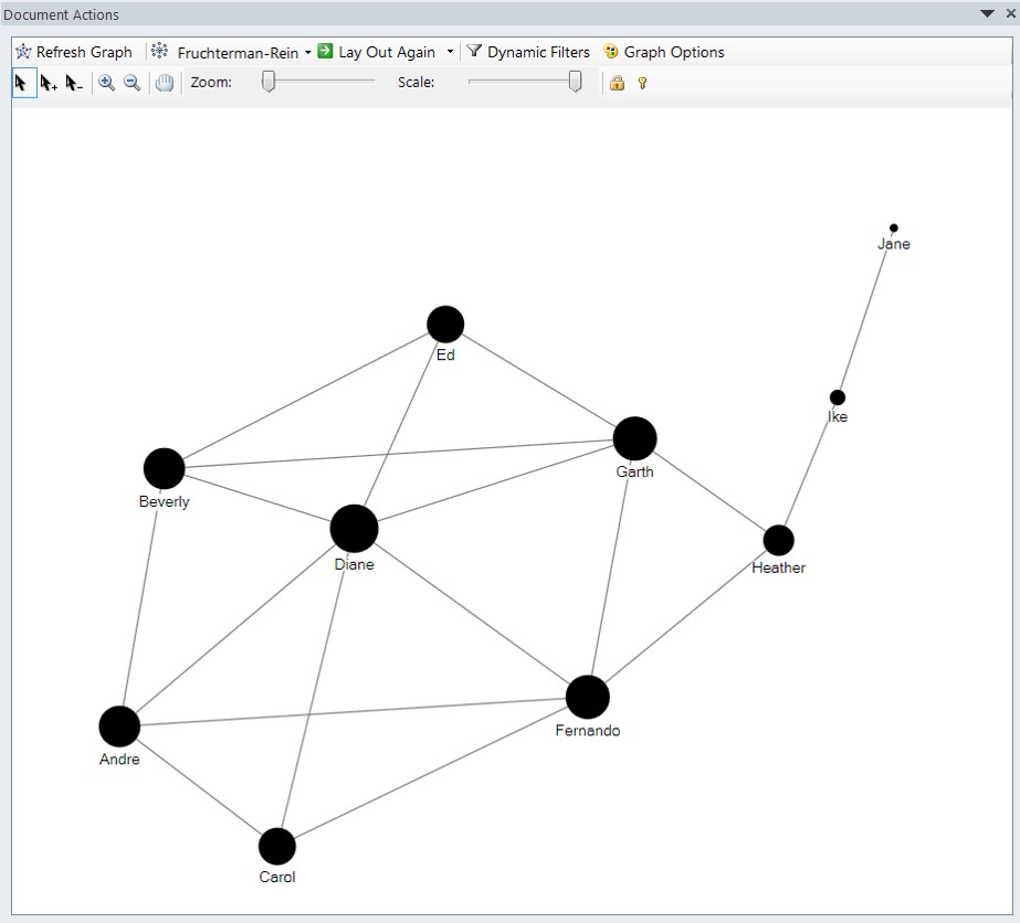 - For example, in a graph representing relationships (such as “liking” or “friending” another individual’s profile or site) between individuals, graph analytics can help answer questions like the following: