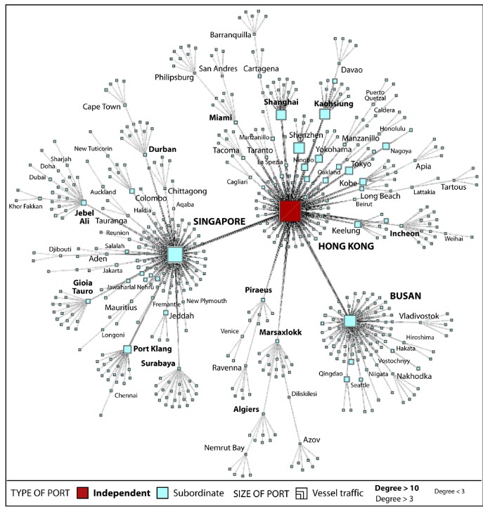 - Maritime degree, centrality and vulnerability: Port hierarchies and emerging areas in containerized transport (2008–2010)