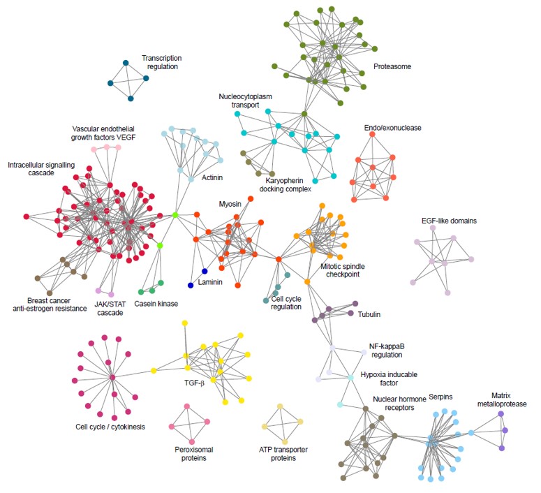 - Size of the node reflects degree of the node (scaled logarithmically).