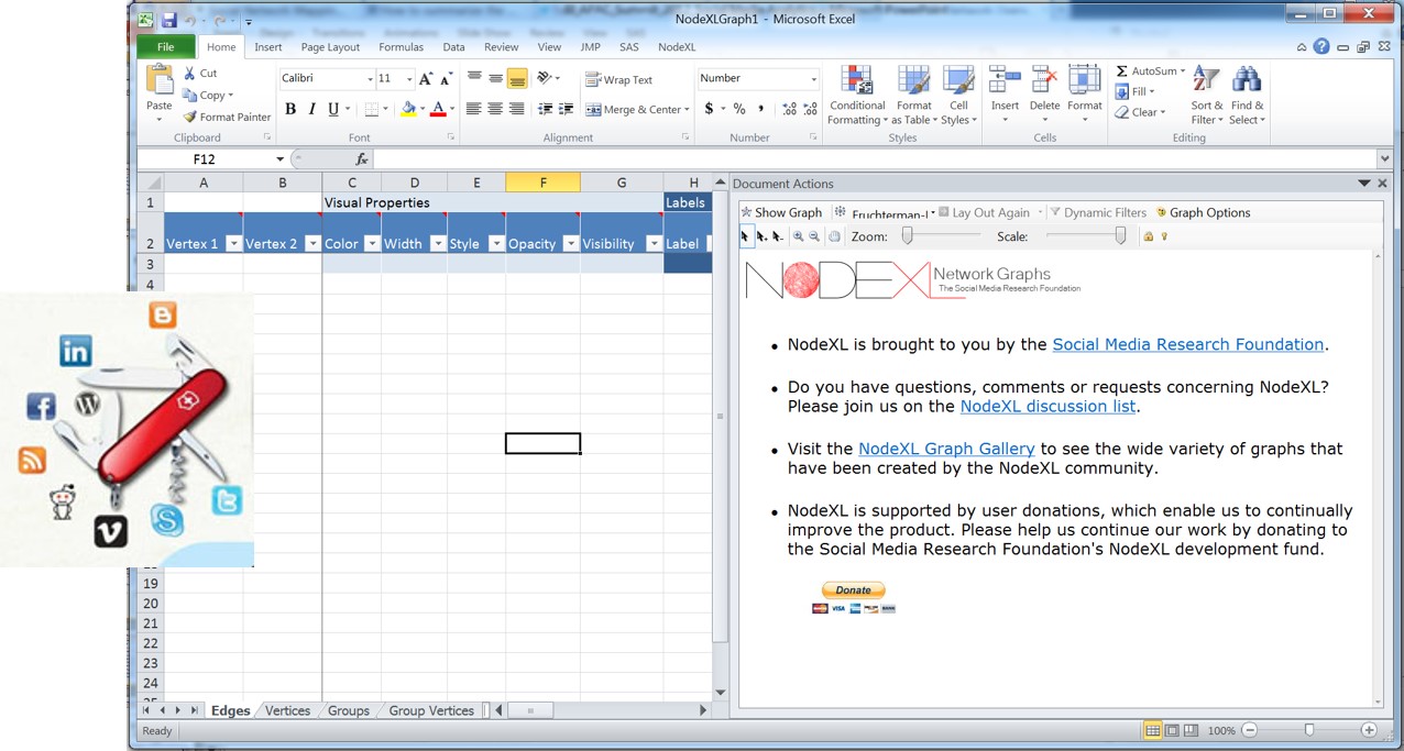 NodeXL, an open-source template for Microsoft® Excel® 2007 and 2010 that makes it easy to explore network graphs.
